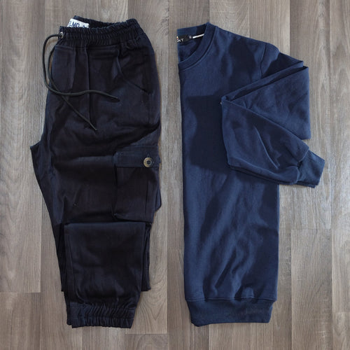 Ensemble Cargo Bleu Marine + Sweat Bleu